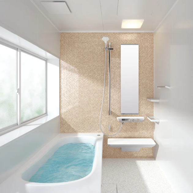 LIXILのユニットバスは、幅広いデザイン性と機能性の高さが特徴です。浴室のデザインを豊富なパーツからカスタマイズできるため、使いやすいようにオリジナルで設計できます。