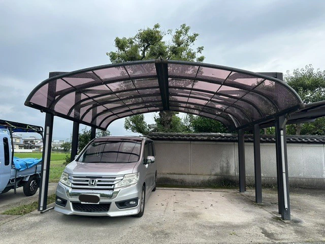 カーポート屋根に付着する汚れが目立ちにくいように、ポリカーボネート屋根はダーク色を採用しました。