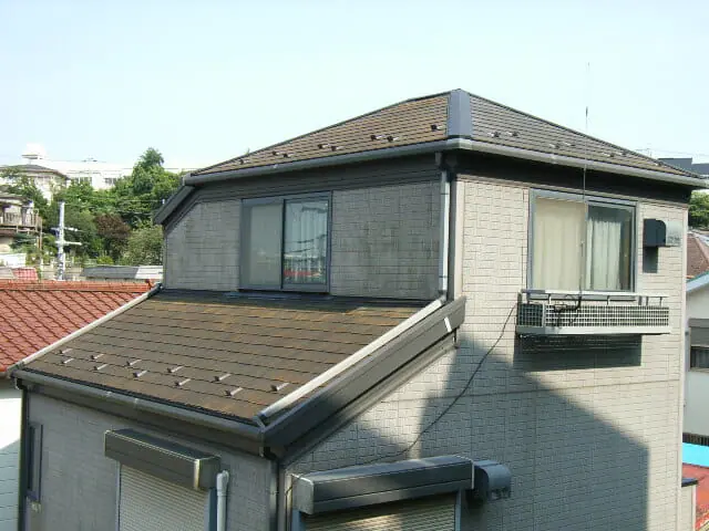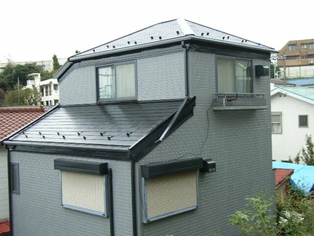 足場を建てたついでに屋根塗装も行っています。10年を経過すると劣化も顕著だったため仕上がりに大満足して頂けました。