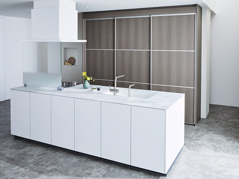 ペニンシュラ型でカラーバリエーションに幅のあるベルフラワーがあり、大容量の収納スペースが魅力のスタイルです。