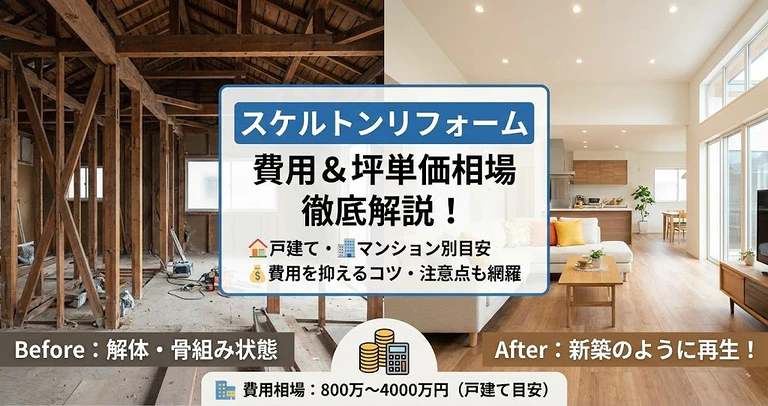 - 築40年の2階建て戸建の1階部分(約50㎡、約15坪)のみをスケルトンリフォームする場合の費用相場は?