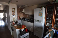 室内の床・壁・天井をすべて撤去し、スケルトン状態にしてから工事を行ったフルリノベーション物件です。間仕切り壁で細かく区切られていた空間を、壁の撤去により広く開放的な空間に変え、オープンキッチンや玄関土間などを作りました。
