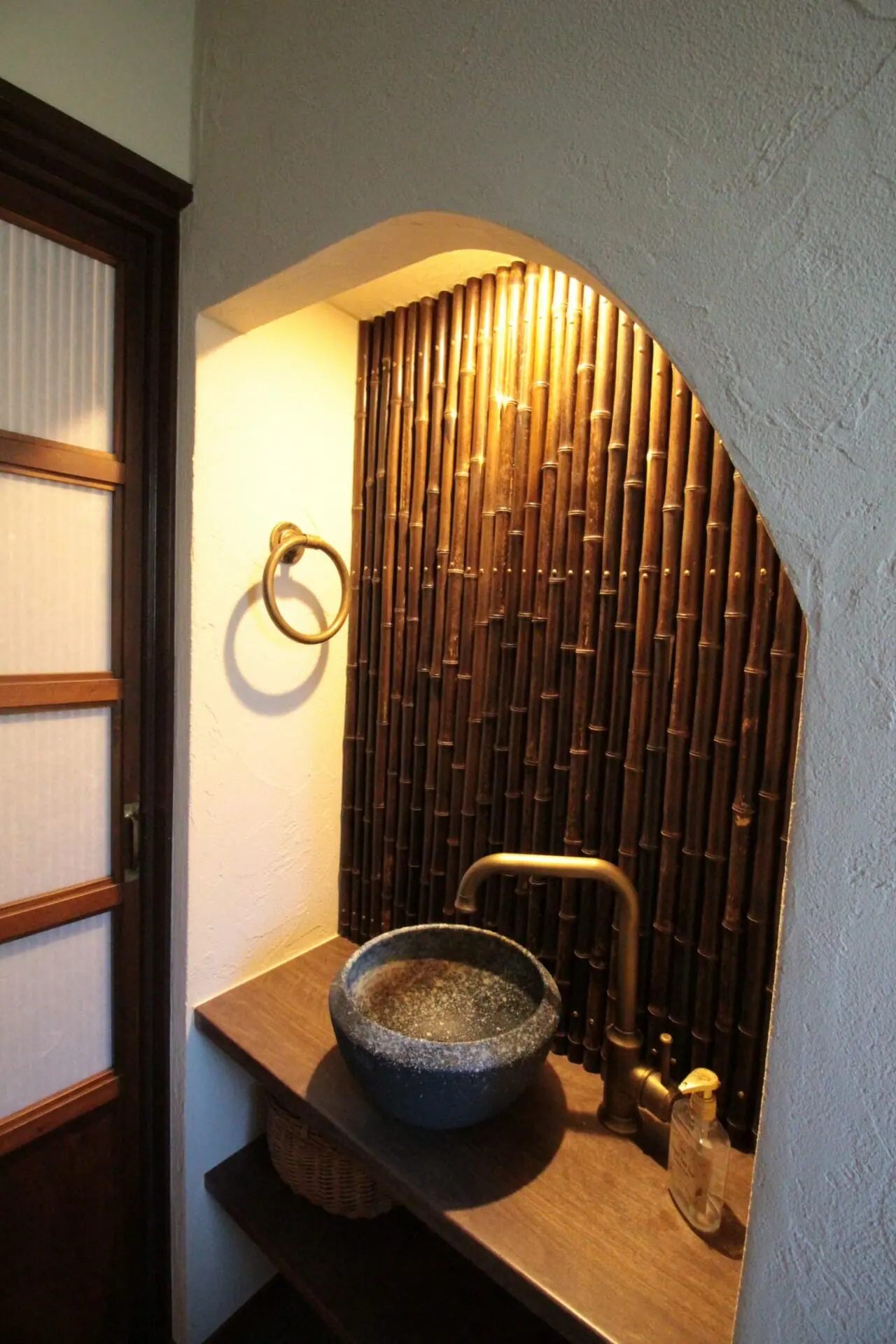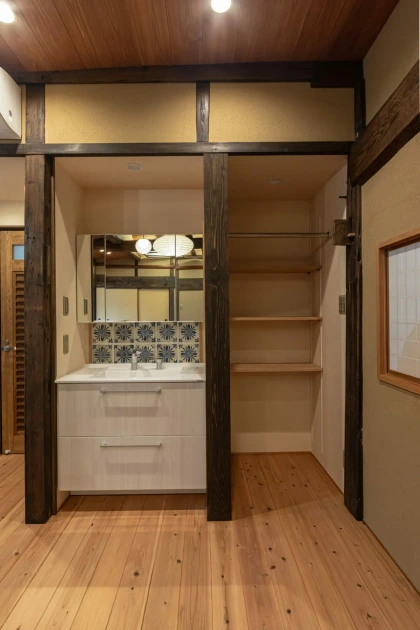 しかし、水まわり設備の仕上がりにはお客さまのこだわりを反映して、宿風の古民家に仕上げています(施工:ステラ)。
