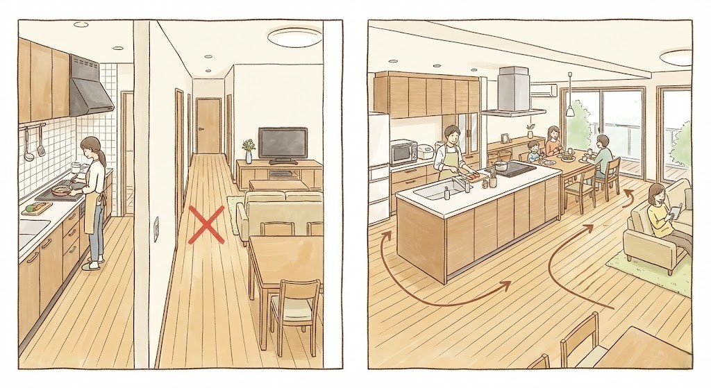 リノベーションでは、生活動線を整えることでスペースの無駄を減らし、日々の動きがスムーズになります。生活スタイルに合わせて部屋の配置を工夫することが大切です。