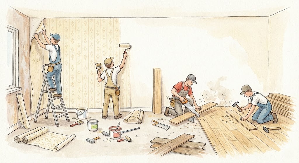 ・壁紙・フローリングの張り替え:20万~100万円