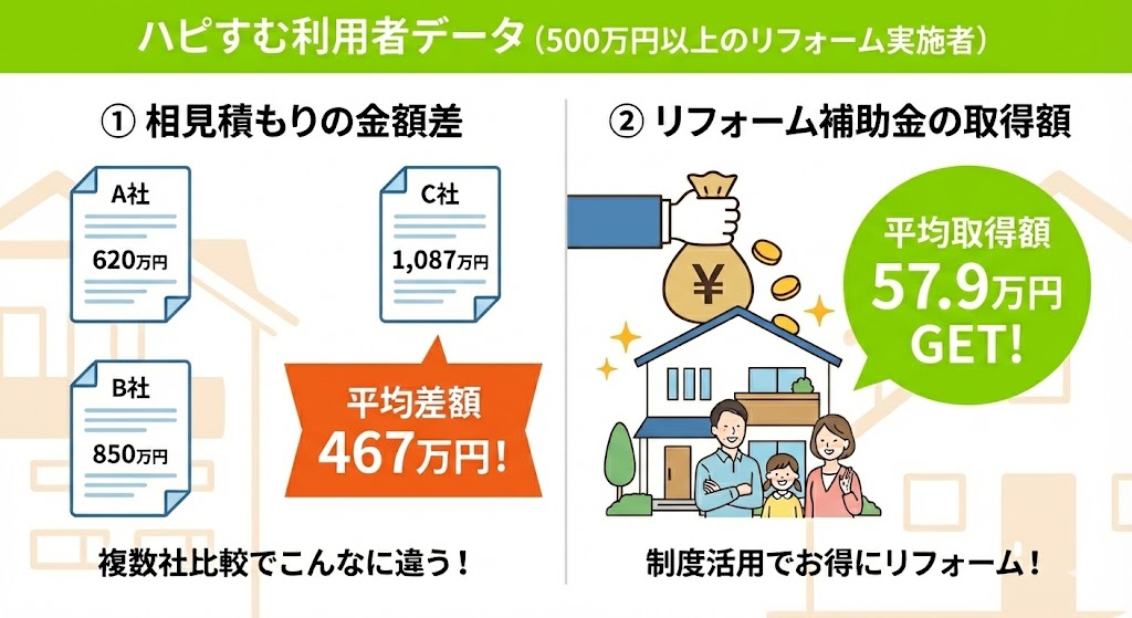 ※参照データ「ハピすむ リフォーム実態調査」:https://hapisumu.jp/competitive-bids/