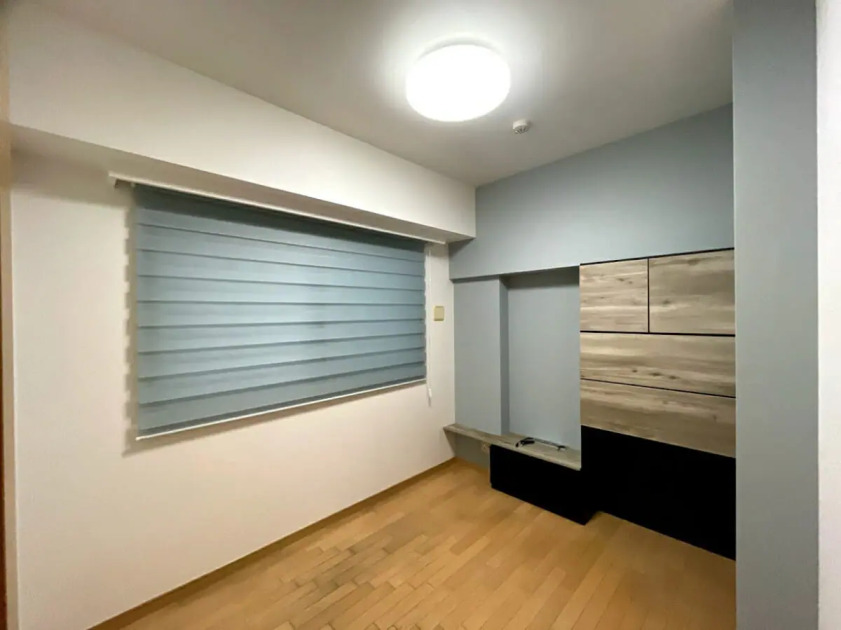 下地に穴を開けられなかったため、壁に補強桟を取り付け、穴を開けずに固定できる商品を採用しました。収納がなかった洋室に、テレビを置いたり、パソコンで作業したりできるスペースができ、楽しい時間を過ごせる空間に仕上がっています。