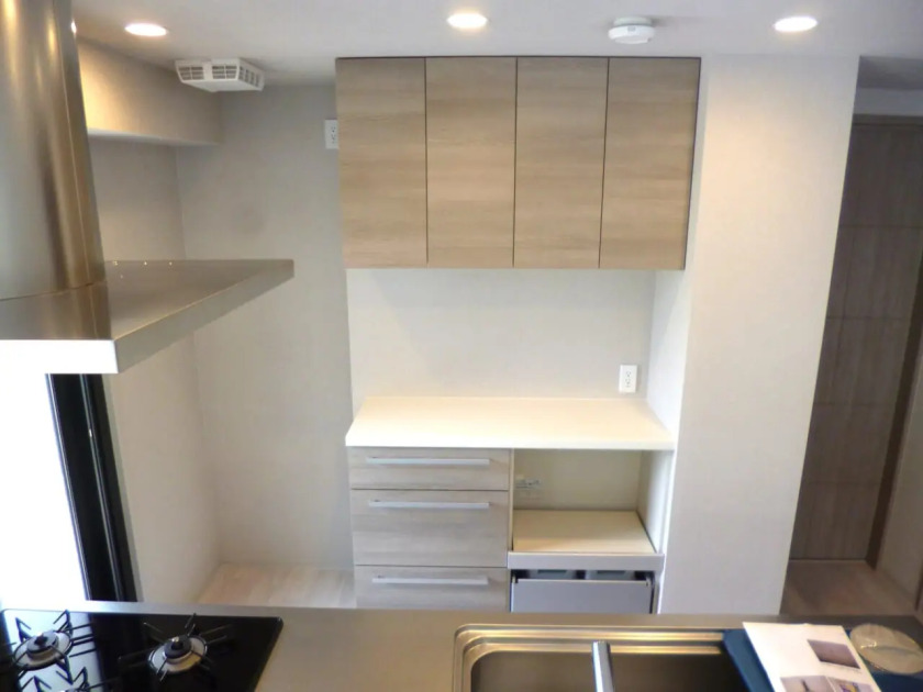 造作の収納は、希望のサイズでつくれるのが魅力です。とくにキッチンには、家電・食器・調味料・鍋など、さまざまな種類の物があるので、既製品では物を収納しきれない場合があります。