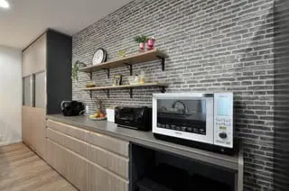 【アイデア7】家電と食器を造作家具に収納する