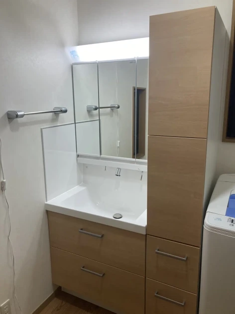 既存の洗面台には収納が少なかったため、収納が多いシステム洗面台に交換した事例。交換にかかった費用は約30万円です。