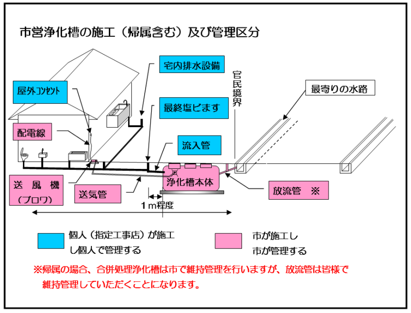 「市営浄化槽」制度は、個人が設置する際に補助金を受け取る仕組みとは異なり、自治体(市など)が主体となって個人の敷地に合併処理浄化槽を設置し、その後の維持管理も行う事業です。