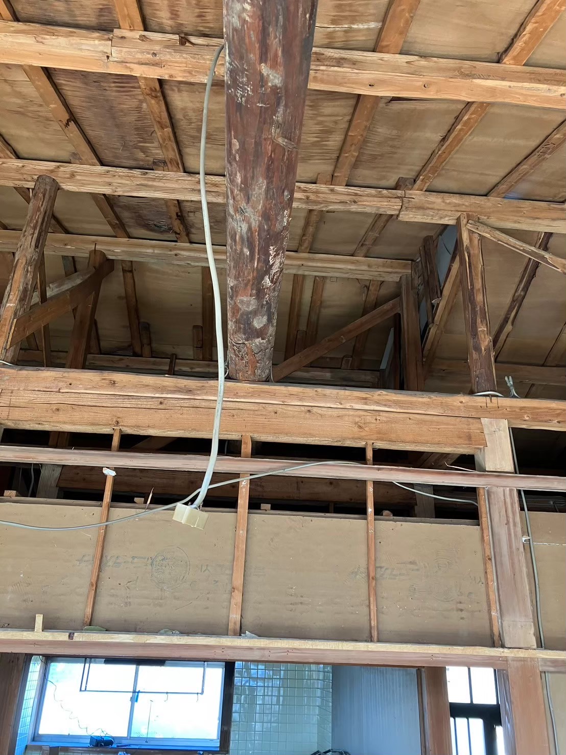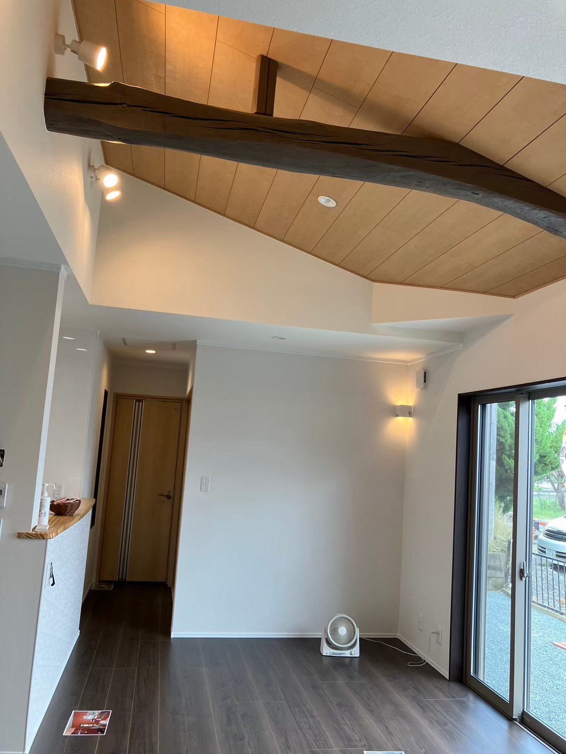 断熱効果を高くしたので、安心して吹抜けを採用。既存の梁を塗装してあらわしてみました。