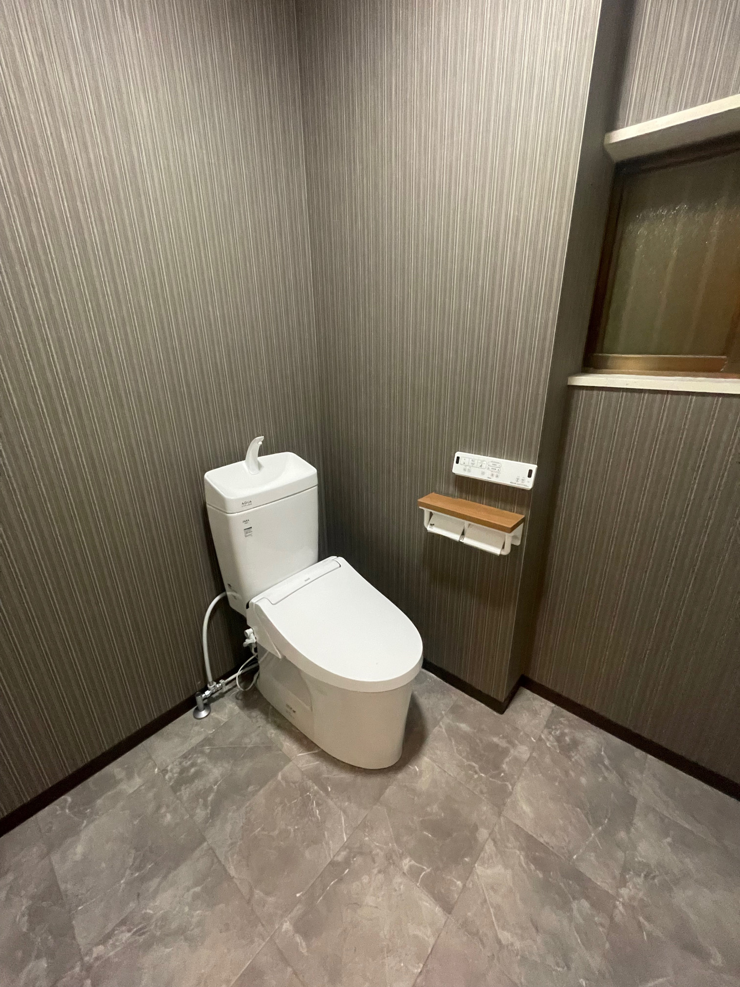 内装は落ち着きと暖かみのある印象へ。トイレは収納部分を撤去したことで広々とした雰囲気へ大変身しました。