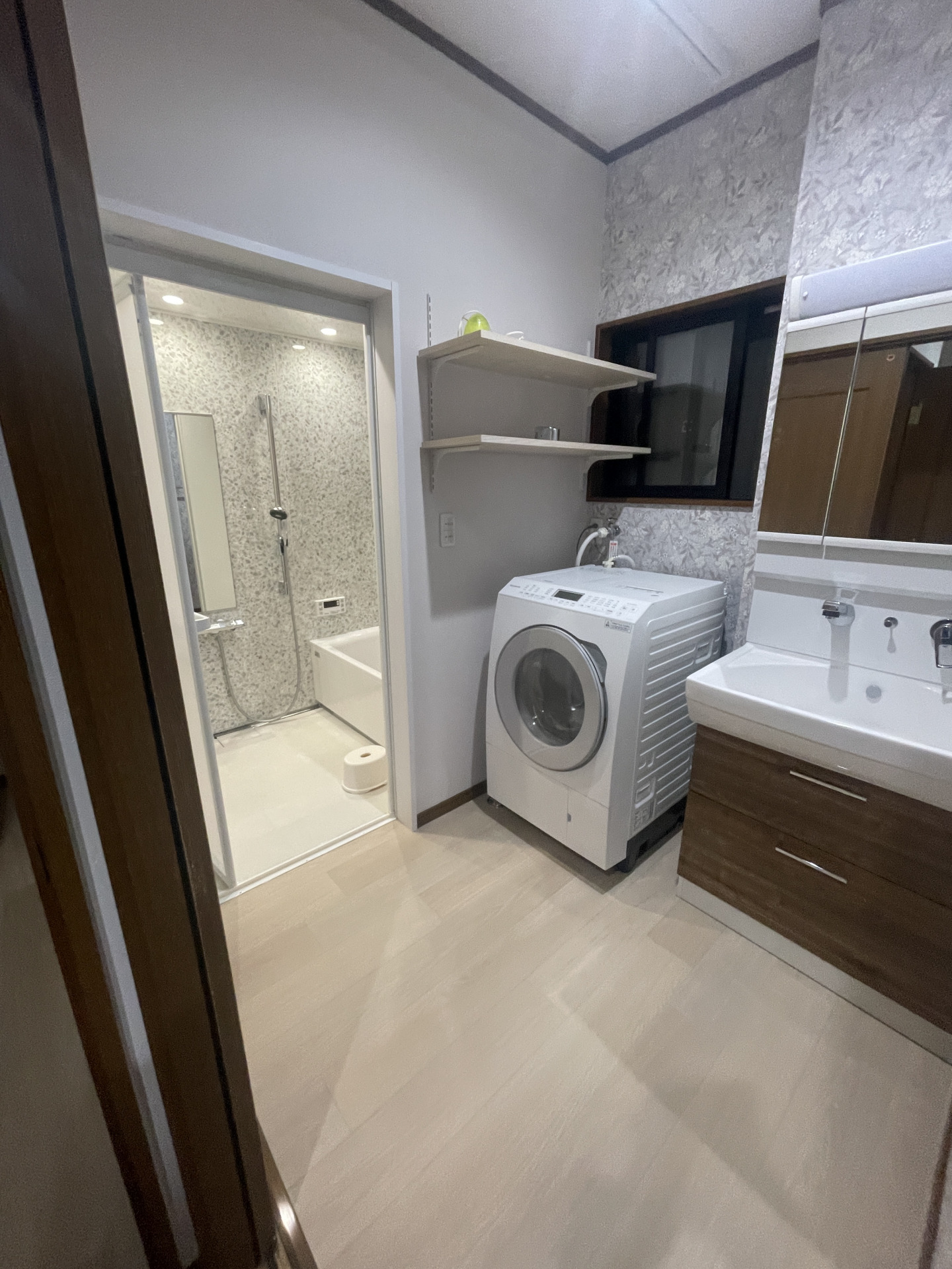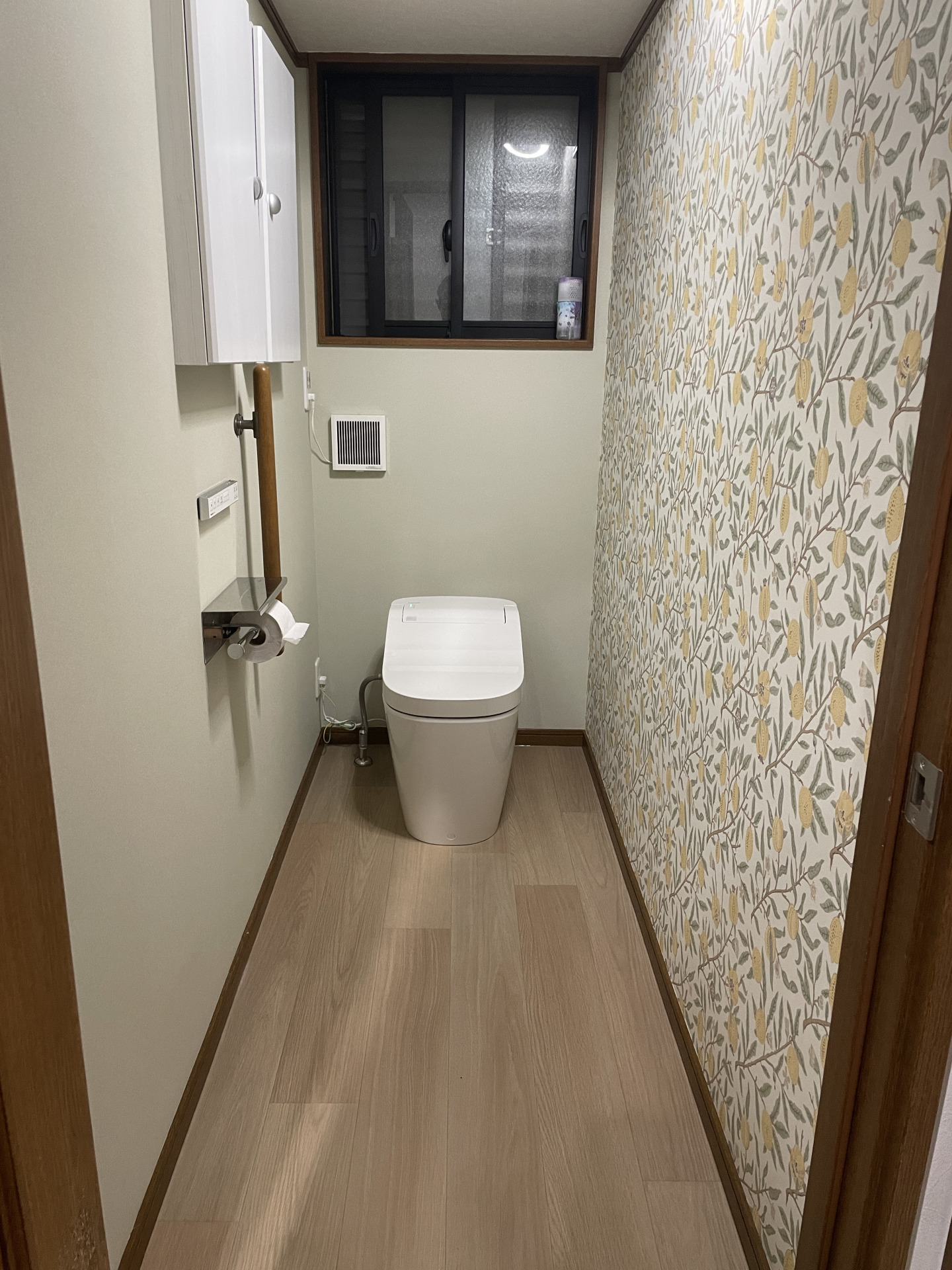 ユニットバスは、現場の寸法に合わせて無駄なく設置できる タカラスタンダード製の「ぴったりサイズ」 をご提案しました。限られたスペースの中でも浴室を最大限広く使える仕様となっています。 また、床は タカラスタンダード独自のタイル調床 を採用し、汚れが落ちやすくメンテナンス性に優れたタイプをご提案しました。 トイレは Panasonicのアラウーノ をご提案。流すたびに泡で便器内を自動洗浄してくれるため、清潔さを保ちやすく、日々のお掃除の負担も軽減できます。