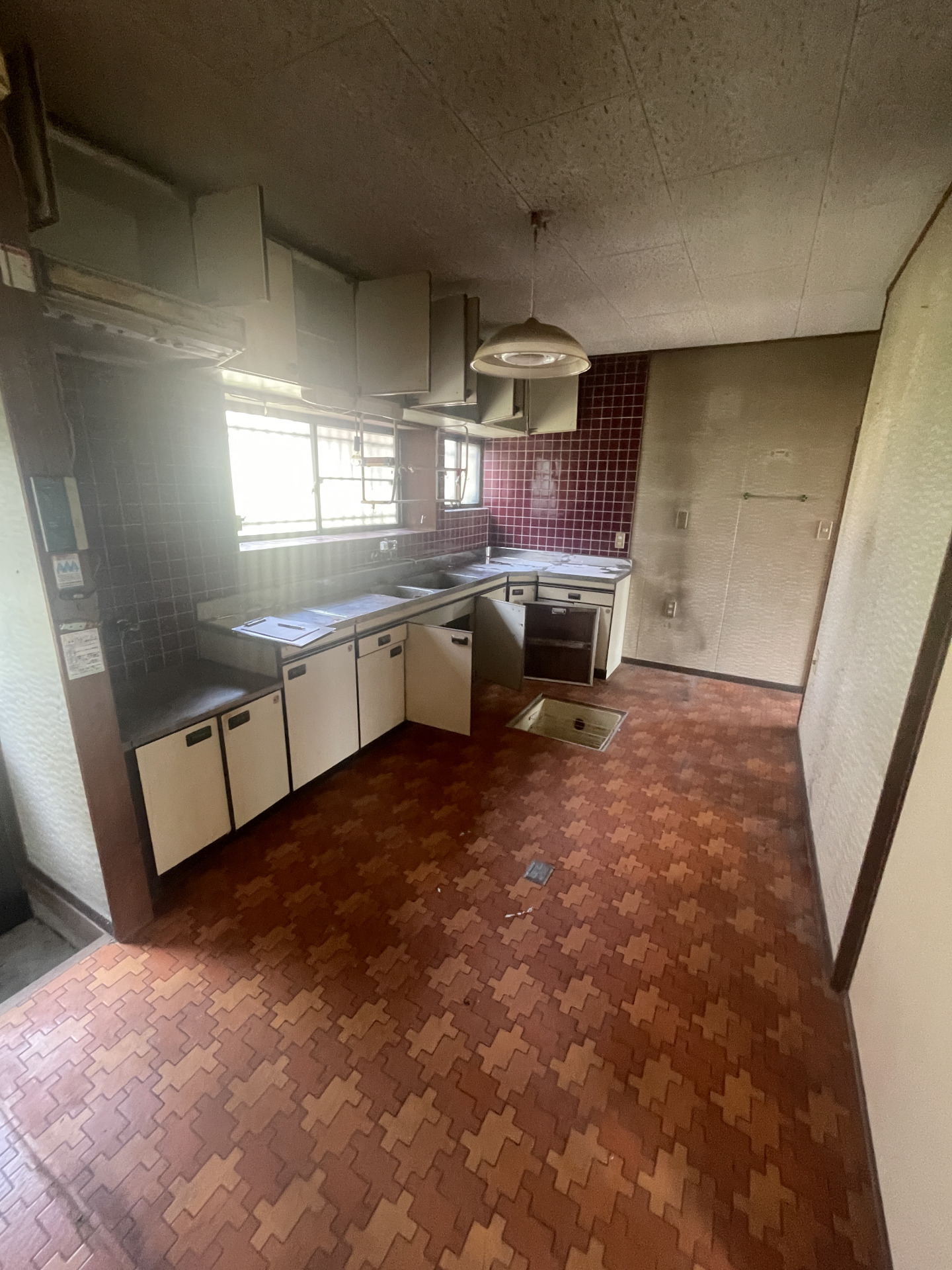 L型のブロックキッチンが全体的に暗く、使い勝手やお掃除のしにくさが気になるため、スッキリとした明るいキッチン空間にしたいとのご相談をいただきました。 あわせて、収納力の向上や作業スペースを広く確保し、日々のお手入れがしやすいキッチンにしたいというご要望もございました。