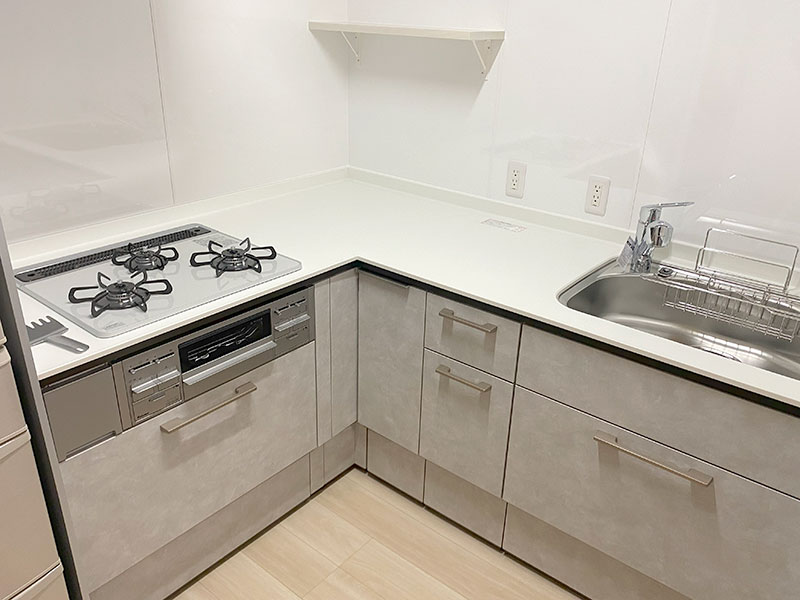 絵画のようなアクセントクロスが印象的なキッチン株式会社ツボイ(アイホーム)