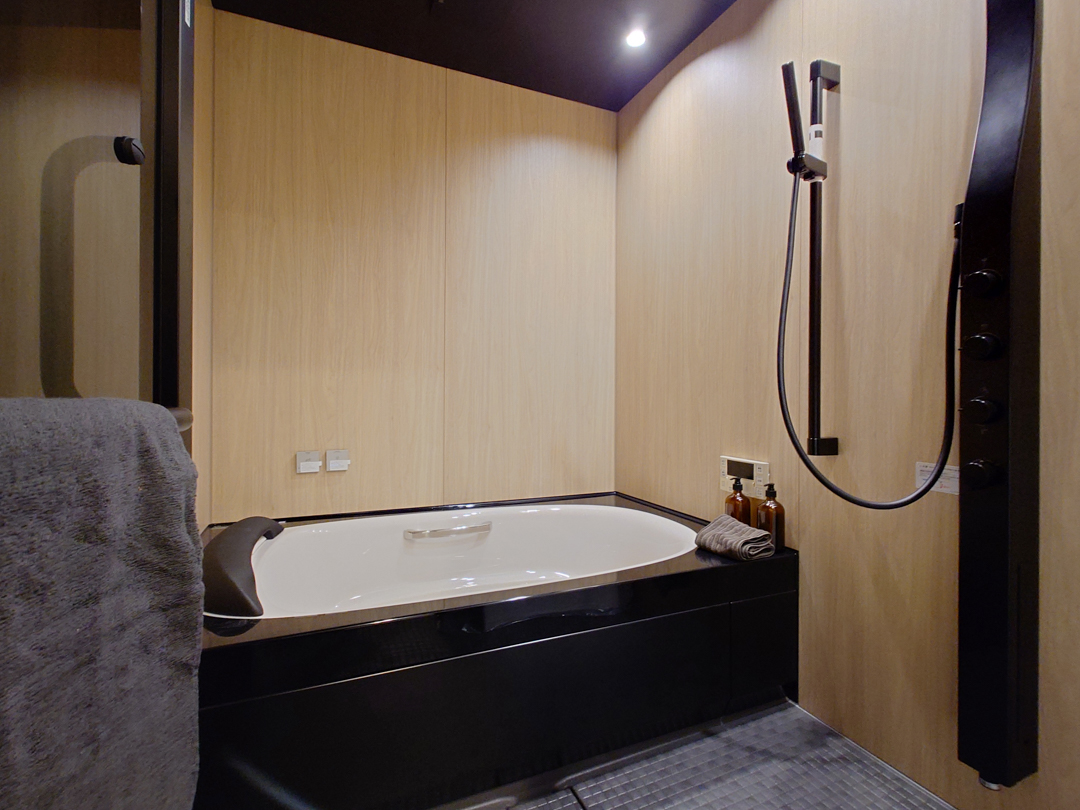 さらに奥には脱衣室と浴室。あえてリビングやキッチンから距離をおくことで生活感を無くし、よりホテルらしさを演出しています。