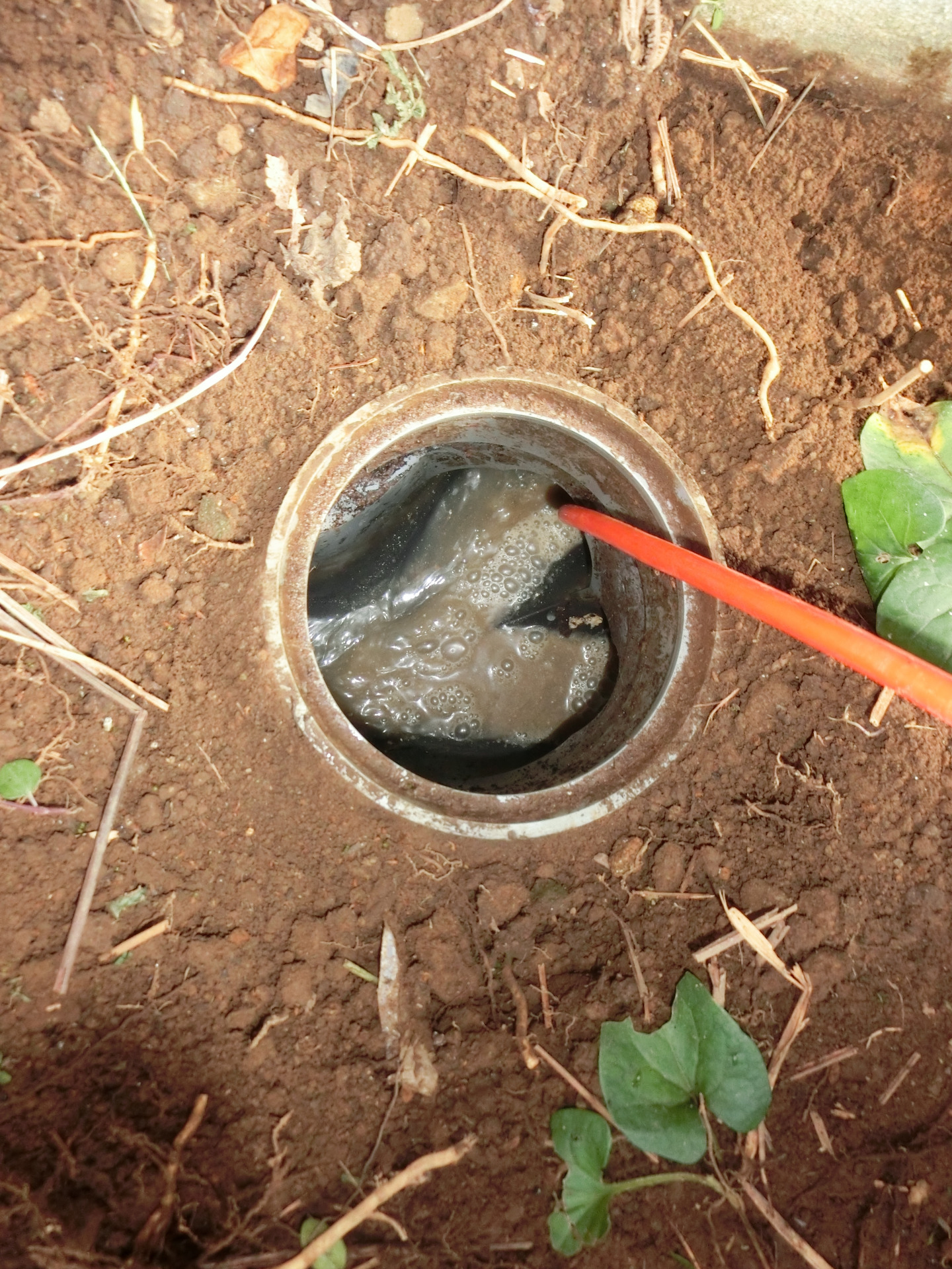 配管の高圧洗浄とあわせてキッチンの下の配管を外し、油汚れや詰まっているものを直接取り除きました。