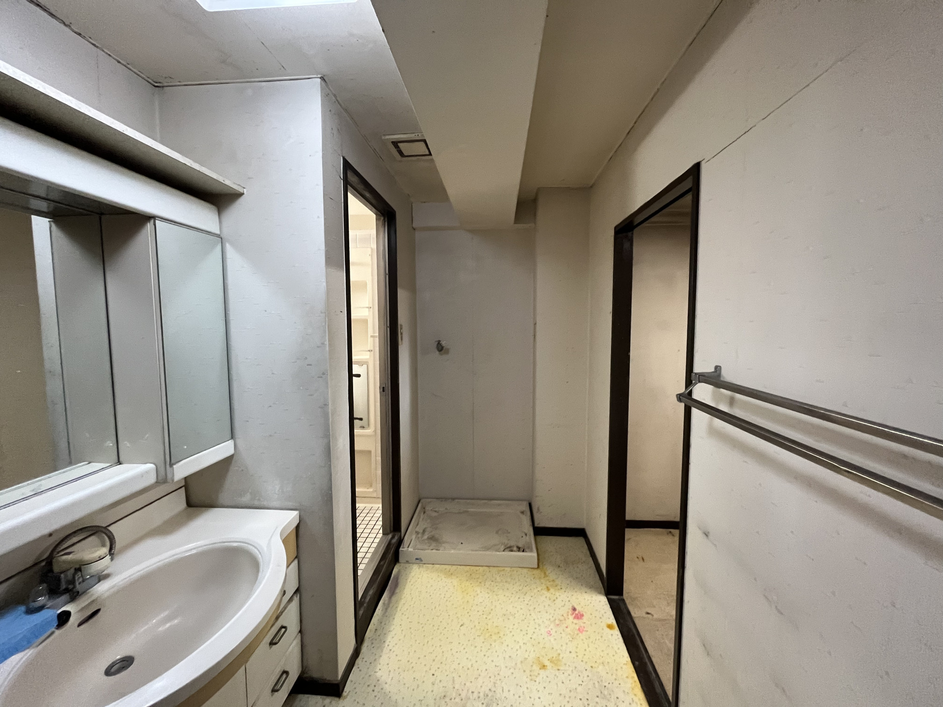 洗面室には、扉のないオープン収納を提案し、扉を開ける動作をなくして使いやすさを追求しました。 また、お部屋ごとに段差があったため、床をすべて作り直して、段差のないバリアフリーに。将来を見据え快適に移動できるようになりました。 お部屋ごとの段差だけでなく、壁や天井の各所にも段差があったためそれらをフラットにすべく、設計段階から1ミリ単位にこだわって検討を重ね、また施工の際も実際現場で検証した結果、スッキリ納めることができました。職人集団の当社ならではの施工が出来たと自負しています。