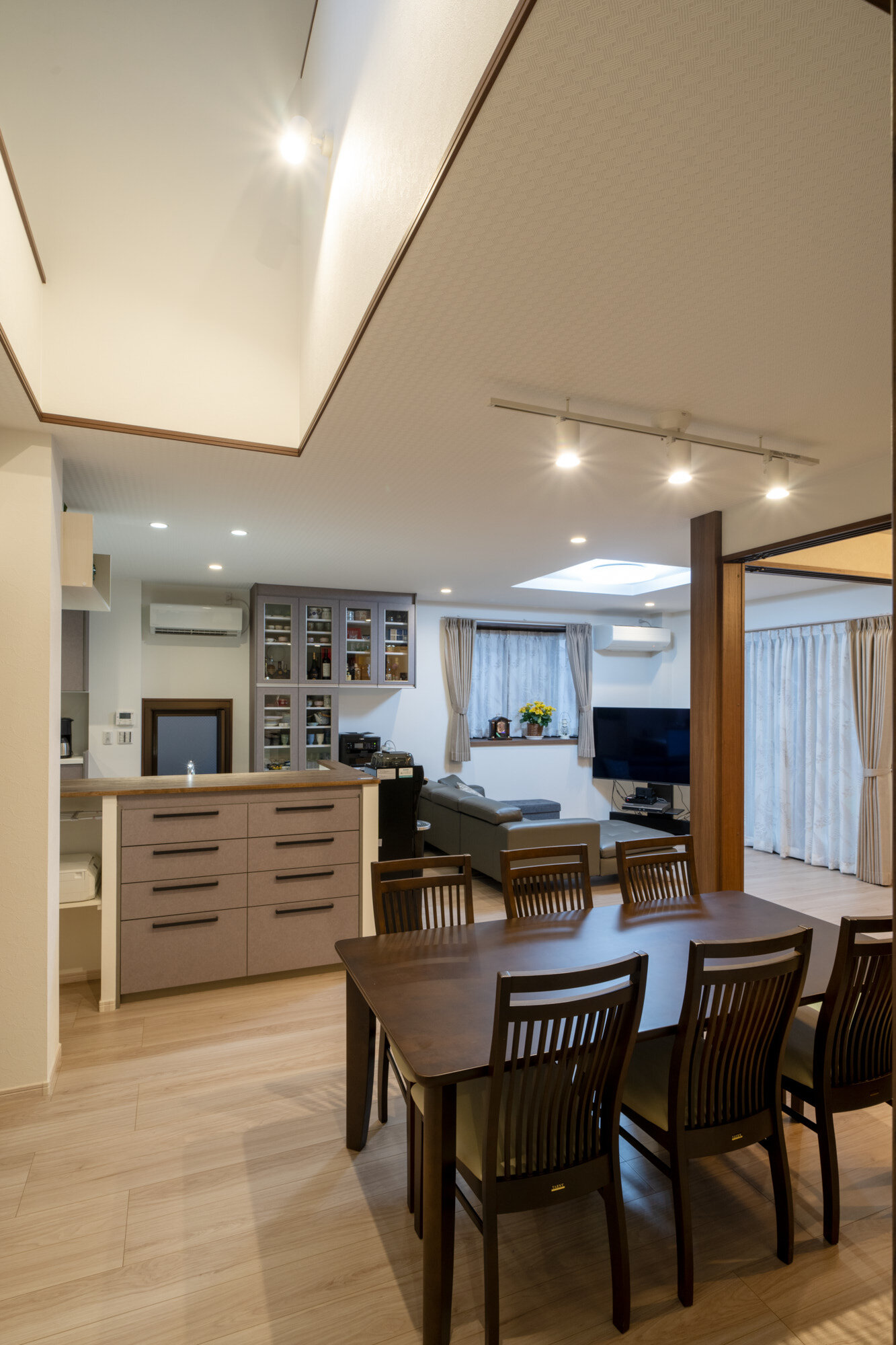 ダイニングと吹抜けをつなげ開放的に。 個室や収納も充実した二世帯住宅。