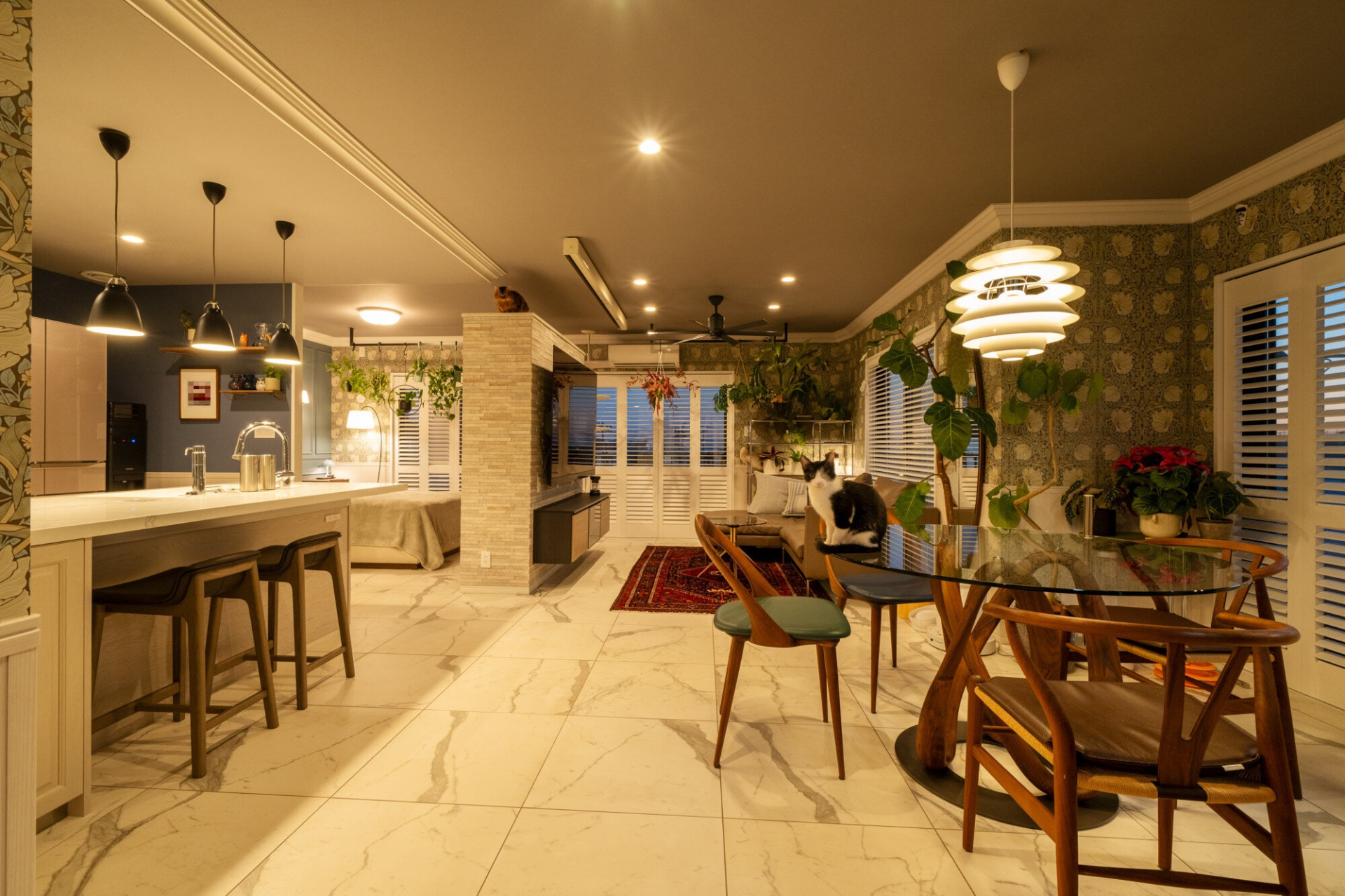 ネコちゃんファーストであり、おふたりのご趣味や嗜好をさらに膨らませ、より大胆な間取りとインテリアデザインを提案しました。
