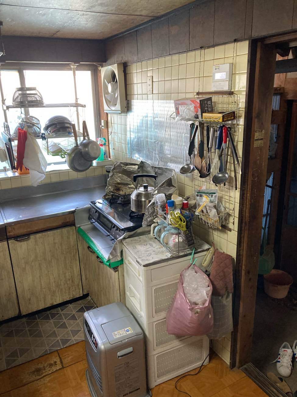 お母様の老後を心配してのご相談でした。 キッチンが老朽化し、吊戸を活用するのが危ない。 全体的に段差があり、転倒の恐れがある。 ユニットバス・洗面が離れにあり、段差・寒さによる危険があります。 妹家族さんとの食事等のため部屋を一つにしたい。