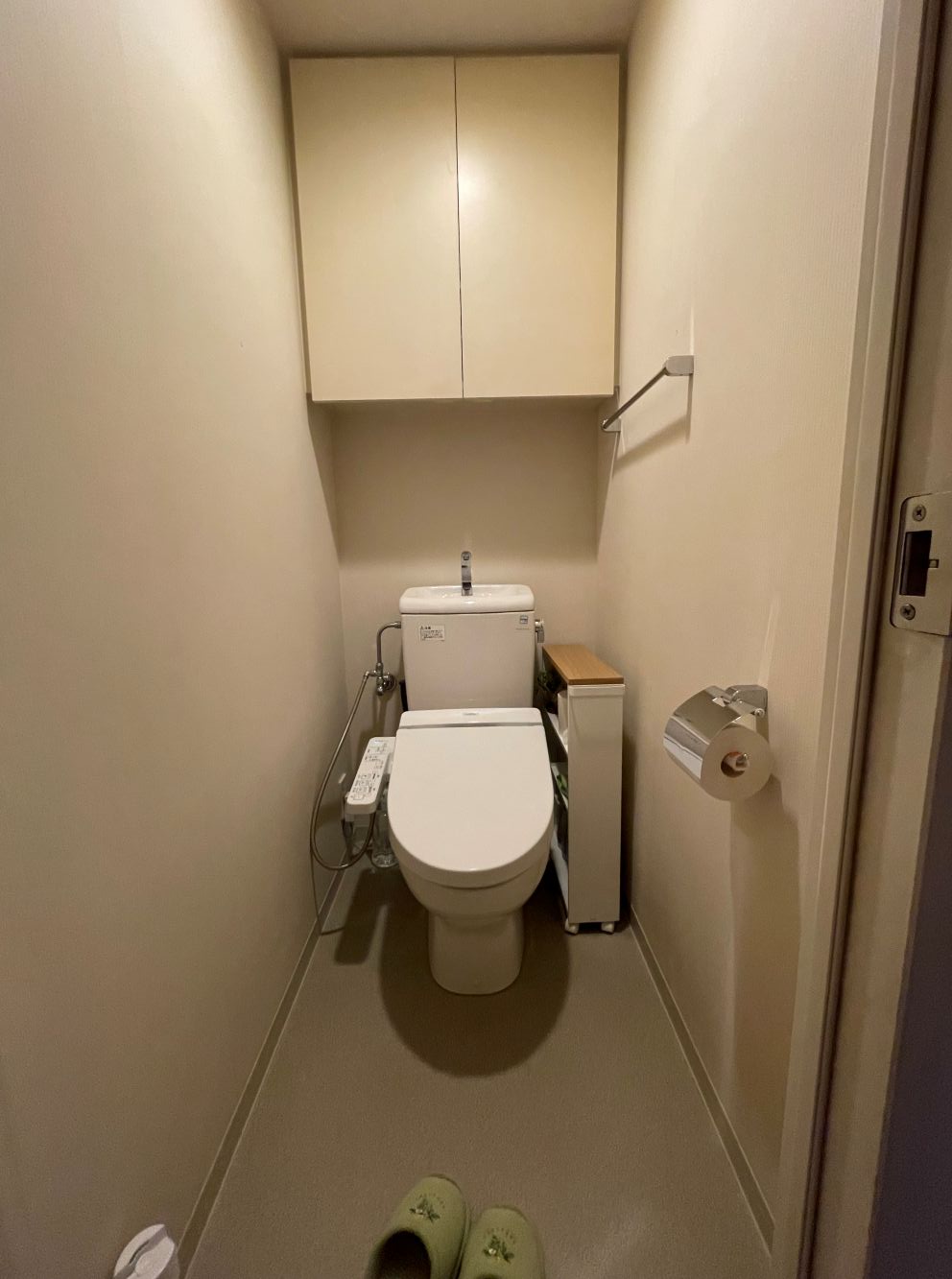 紙巻器は収納棚が付いたタイプにしました。背の高い掃除道具などが入ります。
