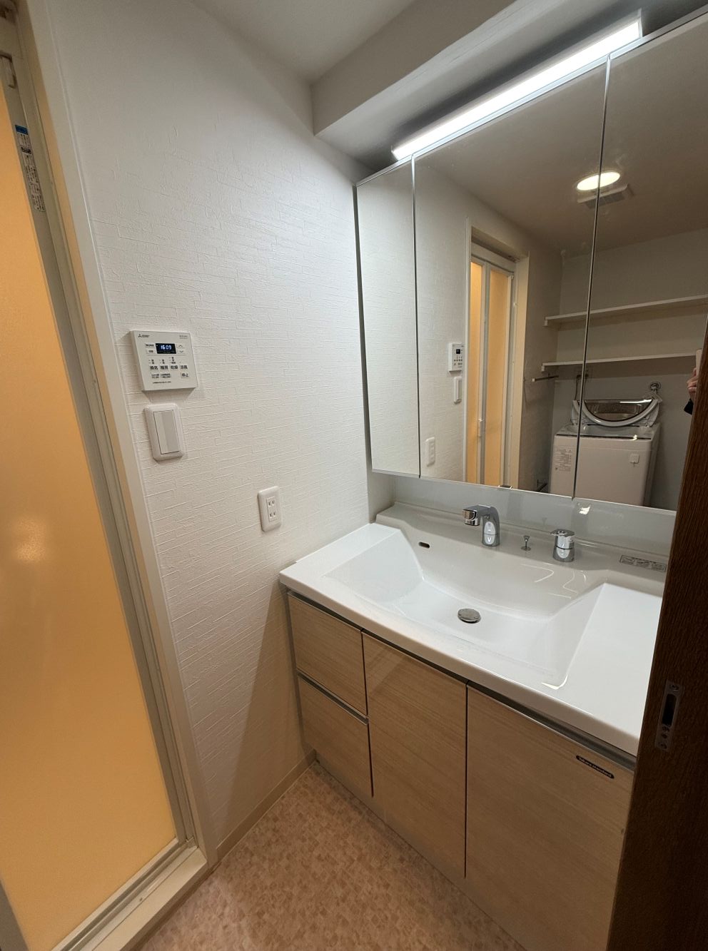 既存の洗面台の幅が86cmで規格品の幅が入りませんでした。(洗面台のは幅の規格品は75cm、90cm、100cm、120cm)