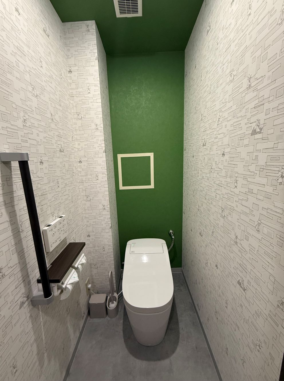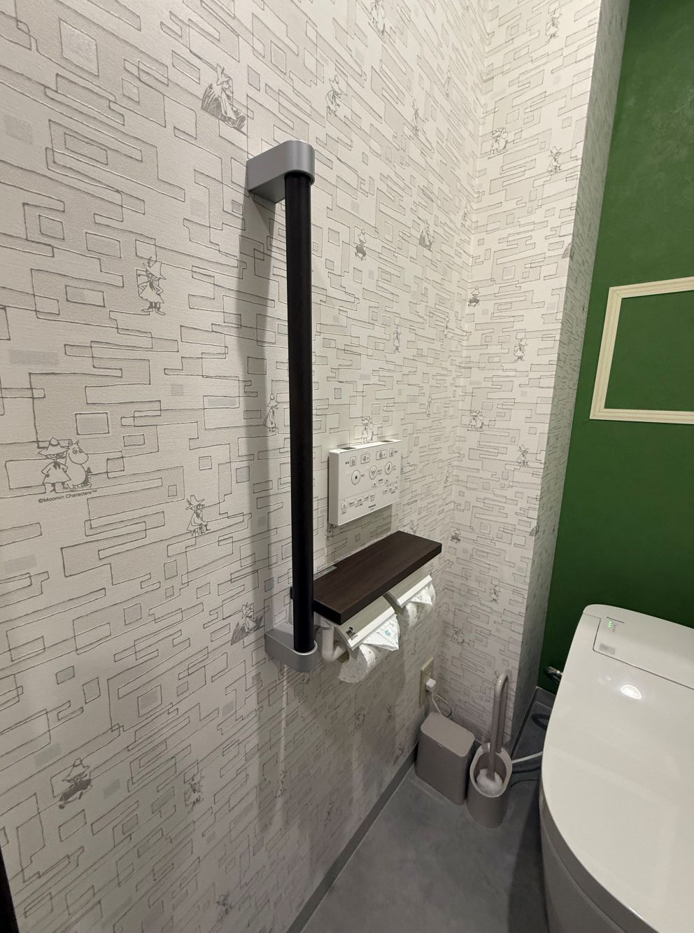 紙巻器は交換、手すりは新しく設置しました。壁の裏に補強を入れているので強く持っても安心です。