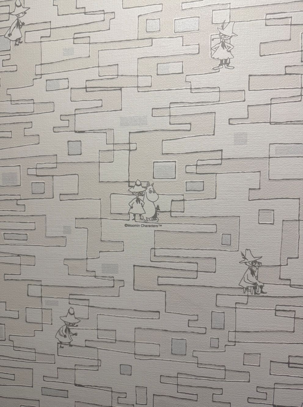 両サイドの壁紙はムーミンのキャラが入ったデザインです。