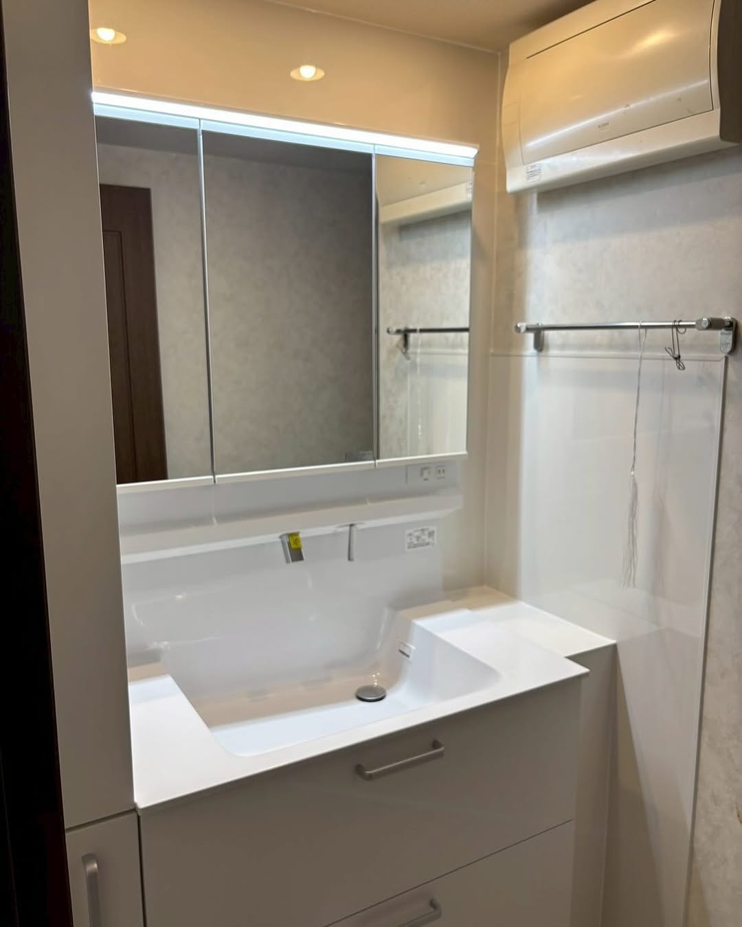 新しい洗面化粧台になり、収納力と使い勝手が大幅に向上しました。 明るく清潔感のある空間になり、毎日の支度が快適になったと喜んでいただけました。