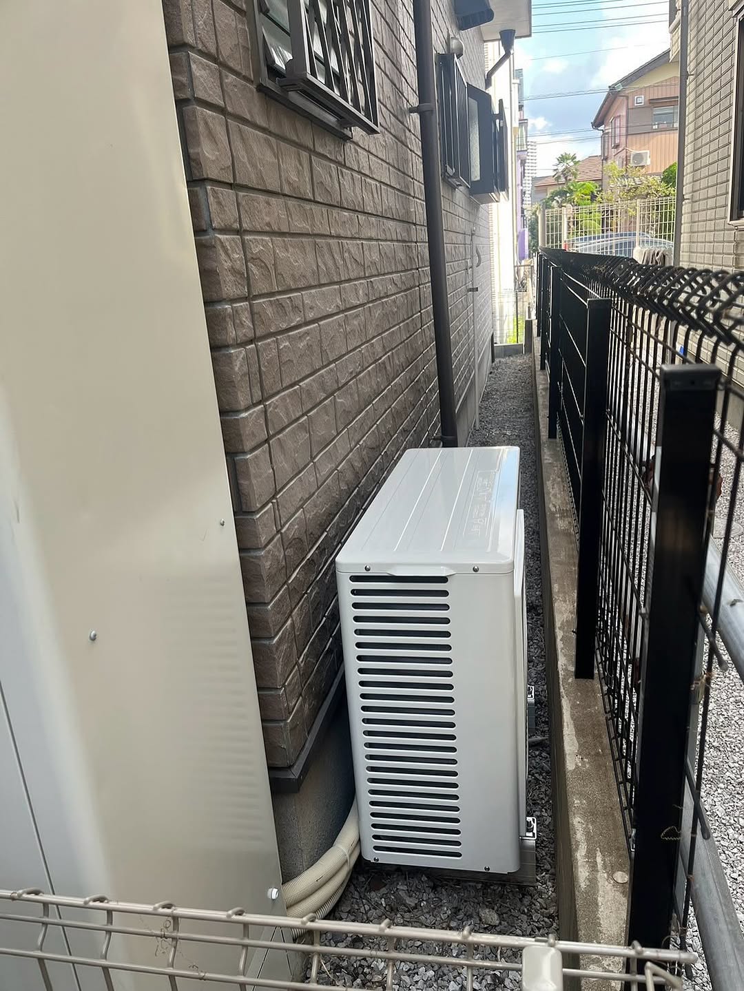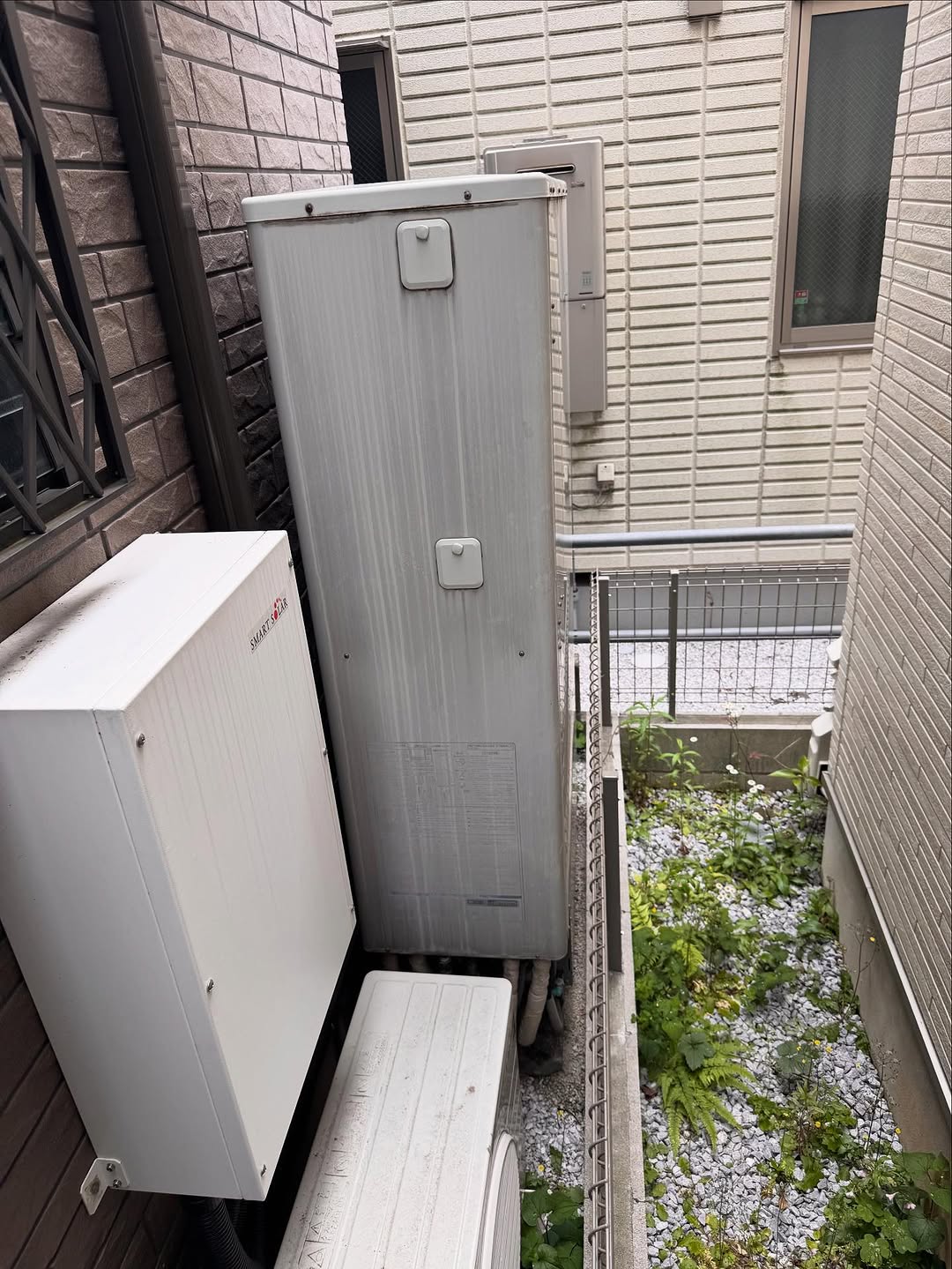 設置スペースが限られていたため、本体・貯湯タンク・ヒートポンプユニットをミリ単位で配置。 給水・給湯・追い焚き配管、電気接続まで一貫して自社職人が担当し、 狭小現場でも安全かつ確実な施工を実現しました。 既存の太陽光設備(スマートソーラー)との干渉を避けつつ、 配管の動線と見た目の美しさにも配慮しました。