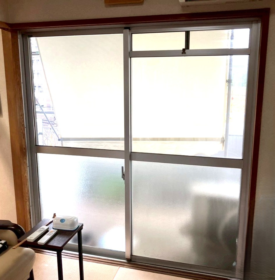今回はお部屋に合った障子風のデザインで落ち着いた空間に仕上げました。 障子風のデザインで落ち着く空間に。 和紙に見えますがガラスなので、紙の貼替は不要。 拭き掃除ができるのも嬉しいポイントです。