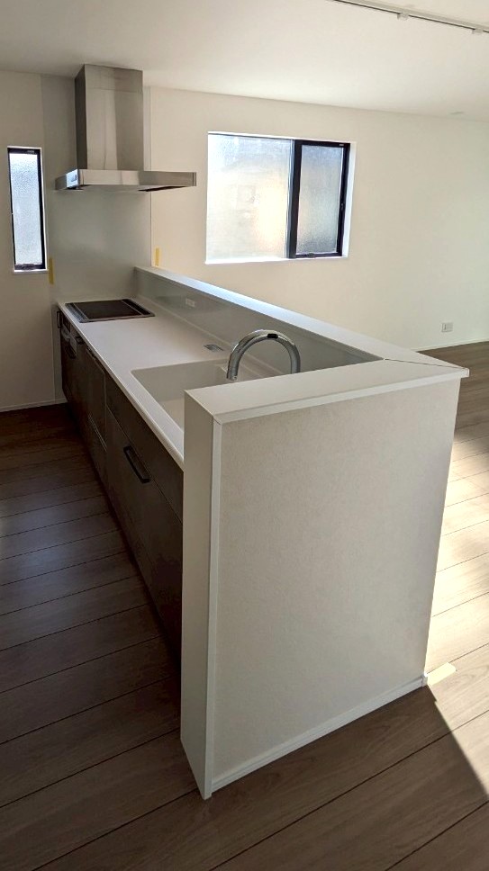 既存のレンジフードや食洗機、水栓はそのまま活かしながら新しいキッチンに入れ替えをご提案しました。