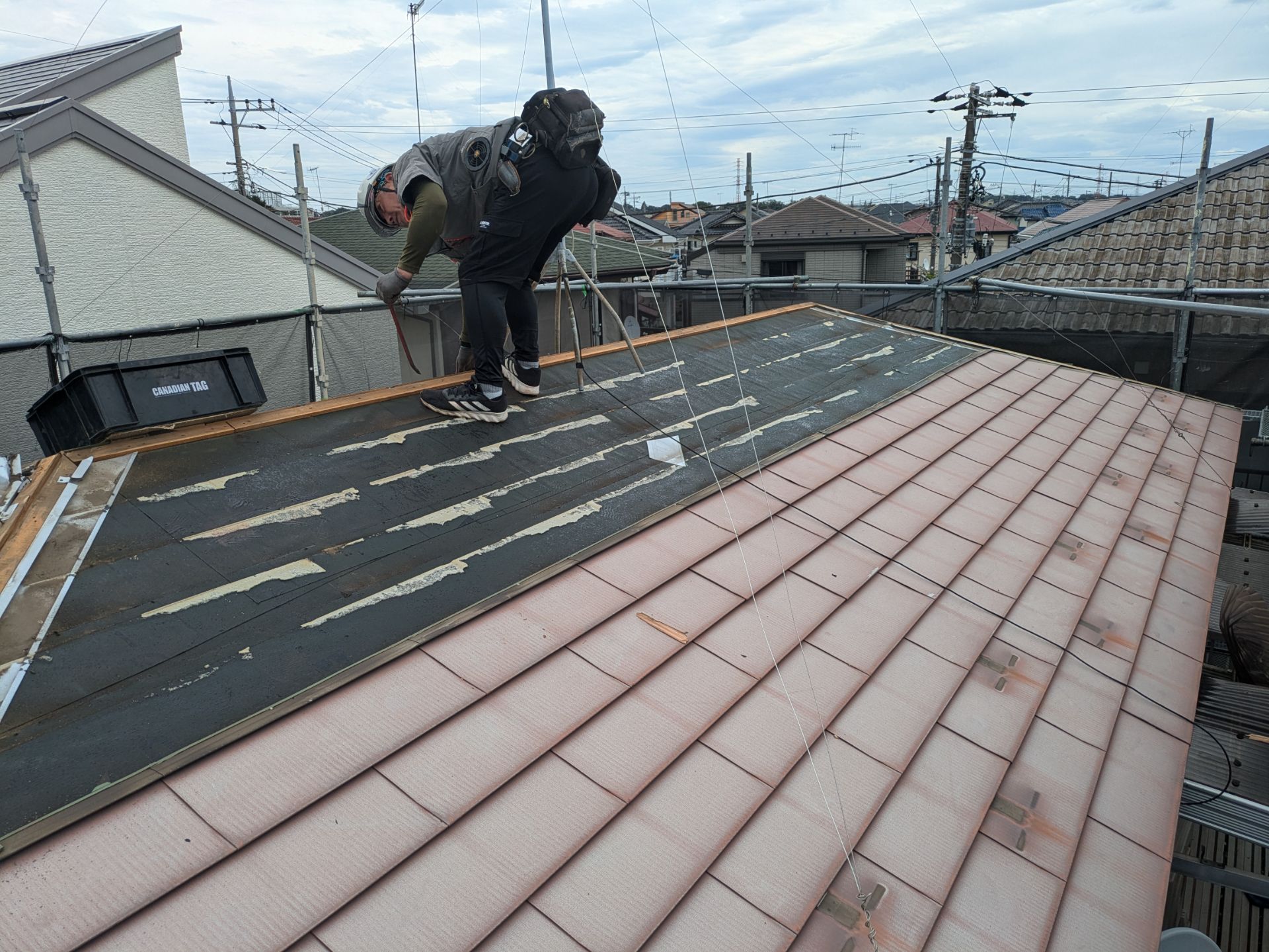 屋根防水紙やり替えに伴う端部の納まり。漏水検査他。