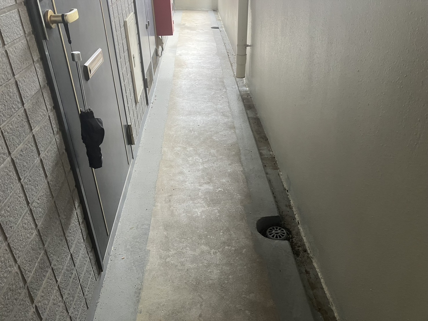 築40年のアパートで、共用廊下の床がALC素地のため経年劣化によるひび割れやそれに伴う水漏れの心配があり 弊社に相談がありました。