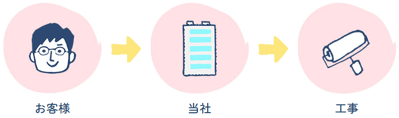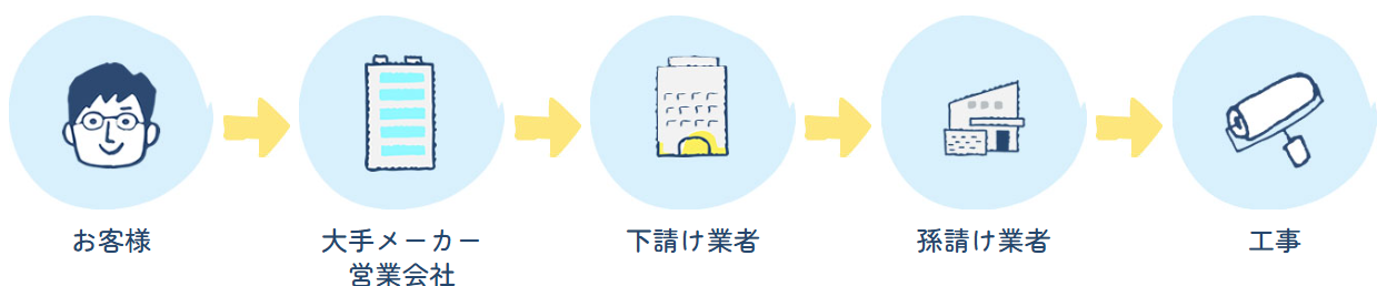 中間のムダを省くことにより、お客様にこだわりの作業を適正価格でご案内でき、手抜き工事が生じない構造になっています。