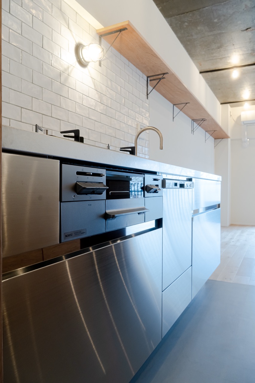 もともとリノベーション済の中古マンションにお住まいでしたが、「次は自分のこだわりでリノベーションしたい」という思いから、お話をいただきました。 釣りが趣味で、週末には友人を招いて魚を捌きながらホームパーティーを楽しみたいとのことで、キッチンには特に強いこだわりがありました。 また、帰宅後すぐに手を洗えるように廊下に洗面台を設け、お客様を迎える“顔”として見た目もかっこいい造作洗面を希望されていました。
