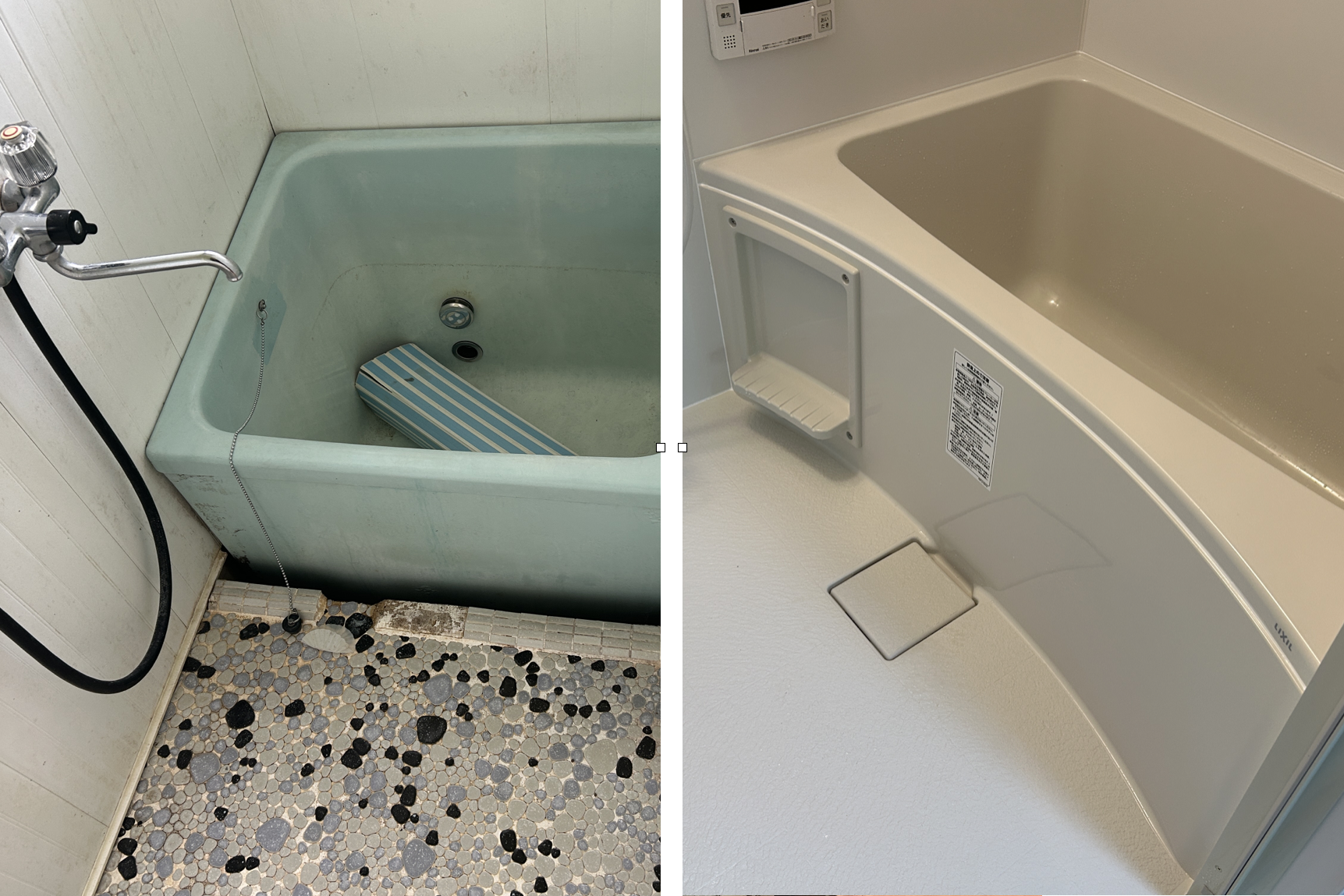 在来工法の浴室からユニットバスへ入れ替えるリフォームは、快適性・安全性が大幅に向上します。