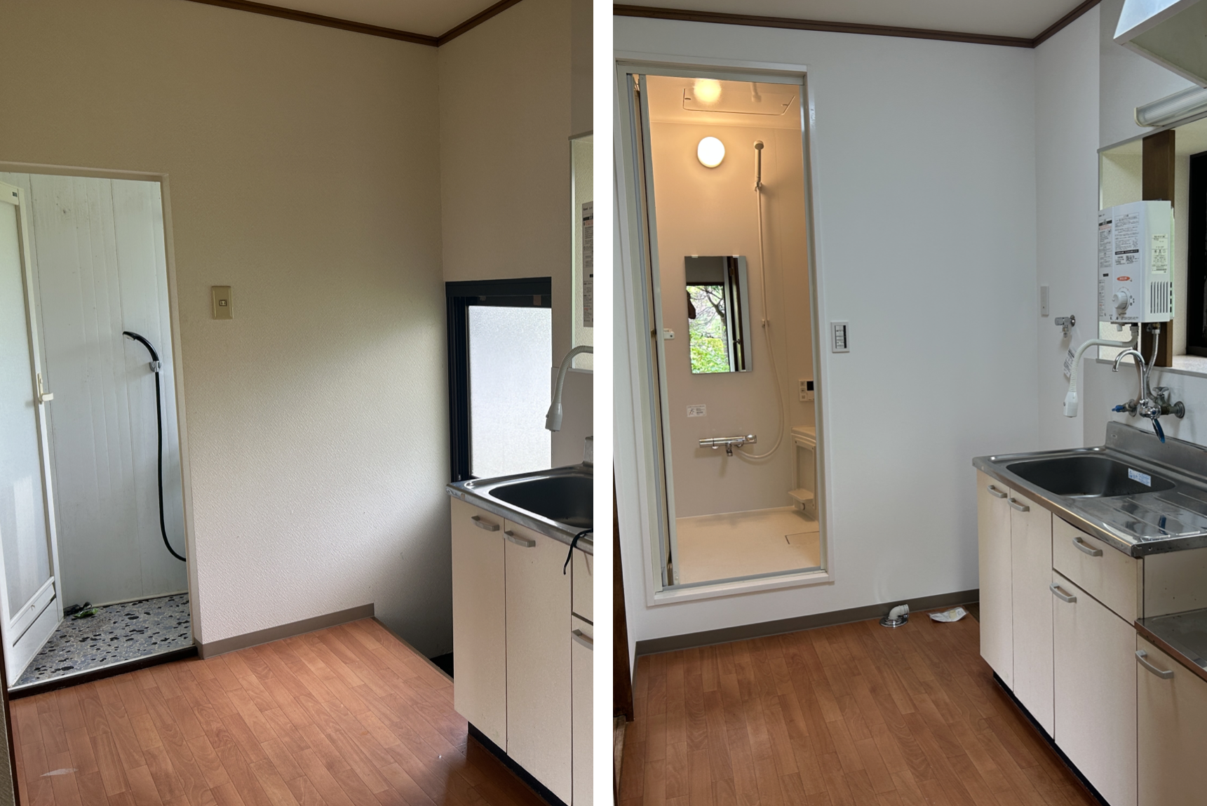 築50年以上の平屋にある、幅わずか70cmという昔ながらの狭小浴室。賃貸活用を視野に入れたお施主様より、「今どきのユニットバスへ交換したい」とのご相談をいただき、改修工事を敢行しました。