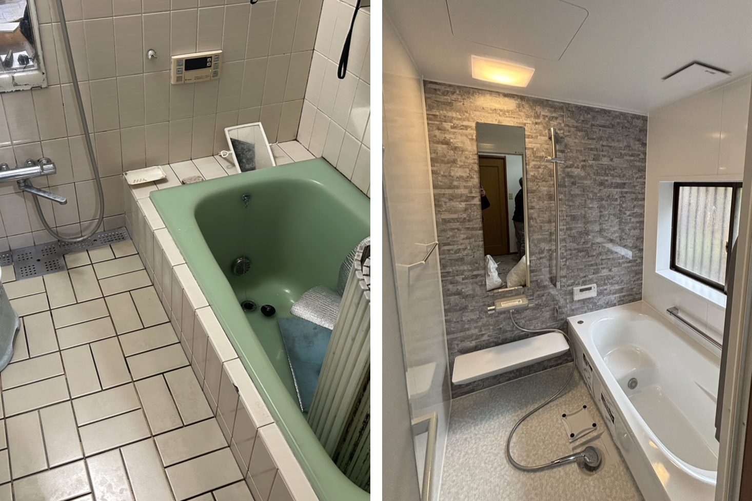 在来工法の浴室からユニットバスへ入れ替えるリフォームは、快適性・安全性が大幅に向上します。