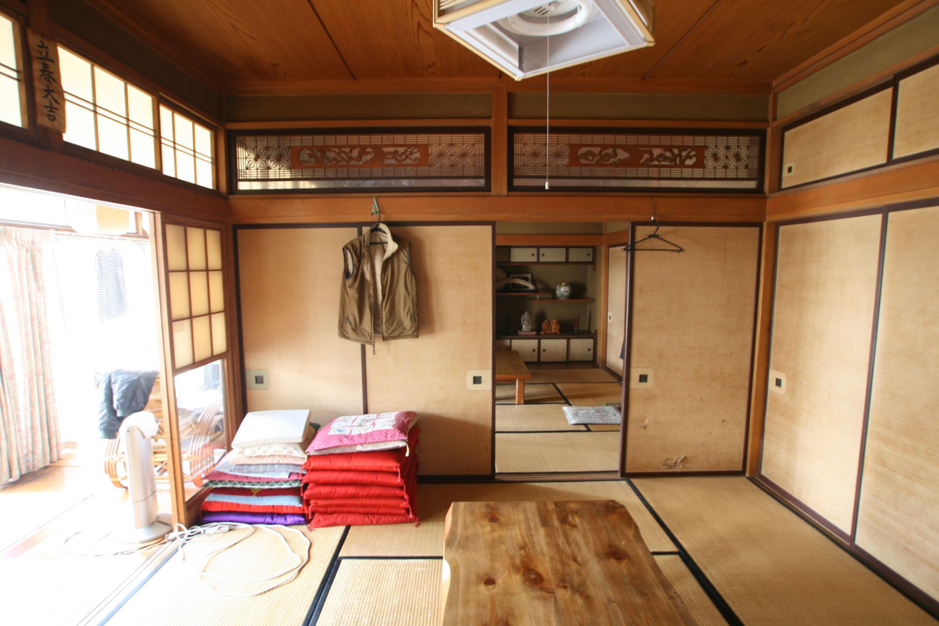 全面の襖をそのままにすると壁に置けるものが無くなるので、一部に壁を作る事は必要。コンセントや物を置くことが出来ます。