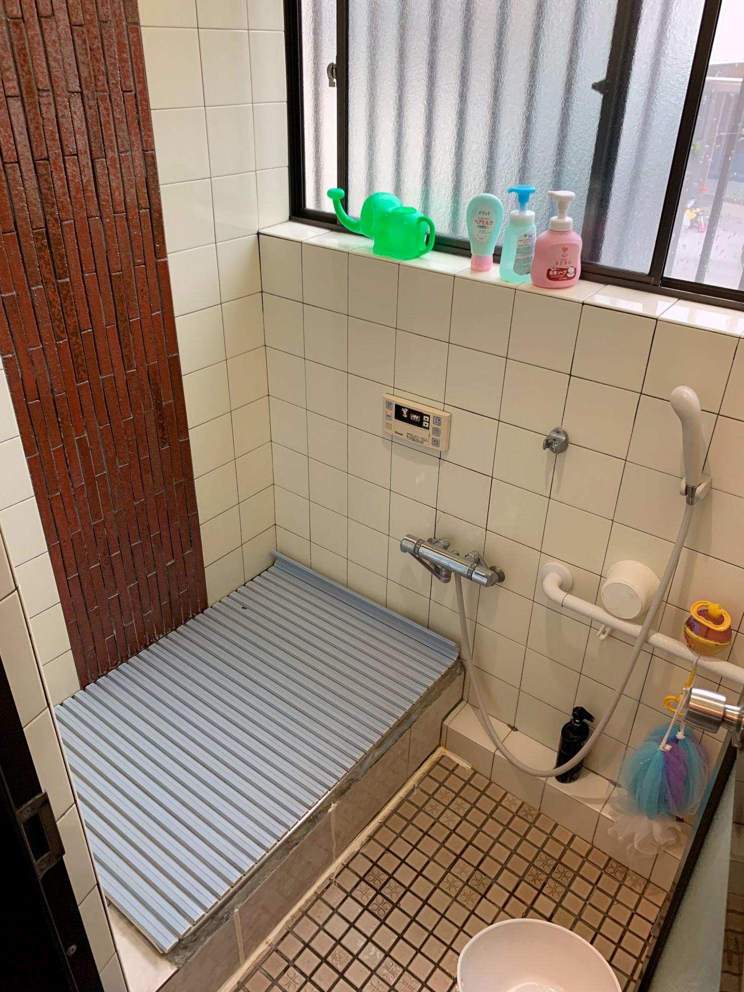 タイルは冷たく寒い事、シャワーが上から使えないことを加味して窓を潰してユニットバスを入れました