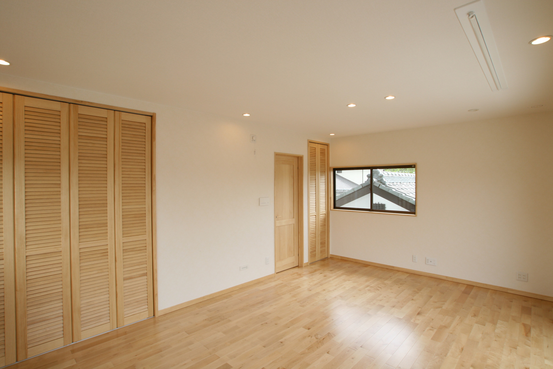 入口のドアも同じデザインで統一し、木の雰囲気がとても気にっています。収納内の湿気対策になります。湿気が溜まらない収納ドアにしたの