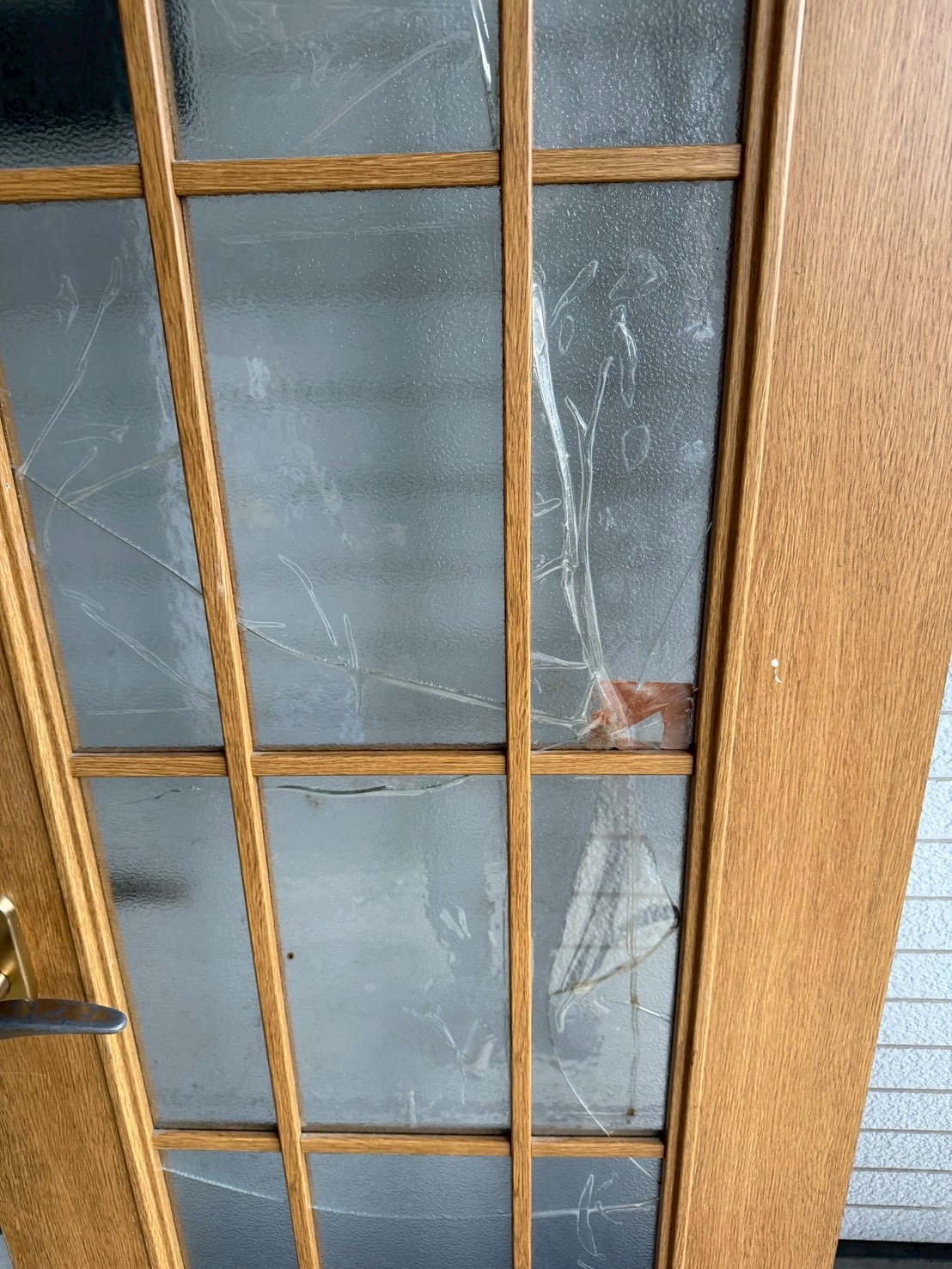 ドアガラスが割れてしまって不便で危ない