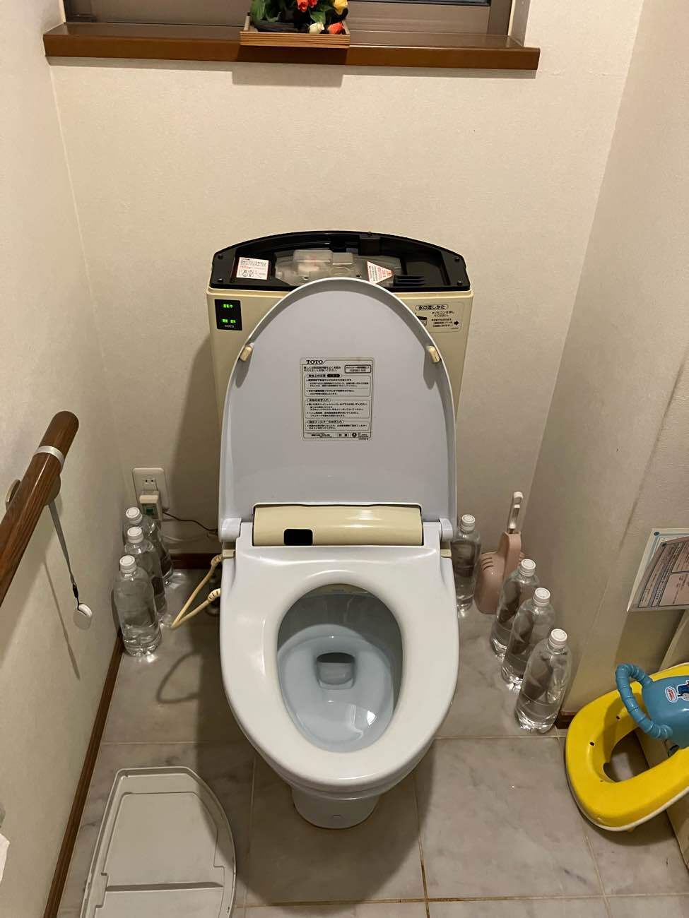 水漏れの起こっていた1階のトイレ。本体の交換に加え、内装も全て新しくします。