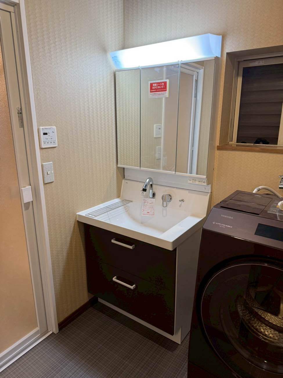 使いやすくて、収納量抜群のLIXIL「ピアラ」に入れ替えました。扉カラーはバリエーションからお好みの色を選んでいただきました。 内装との色味も抜群に合っていて素敵な洗面室になりました。
