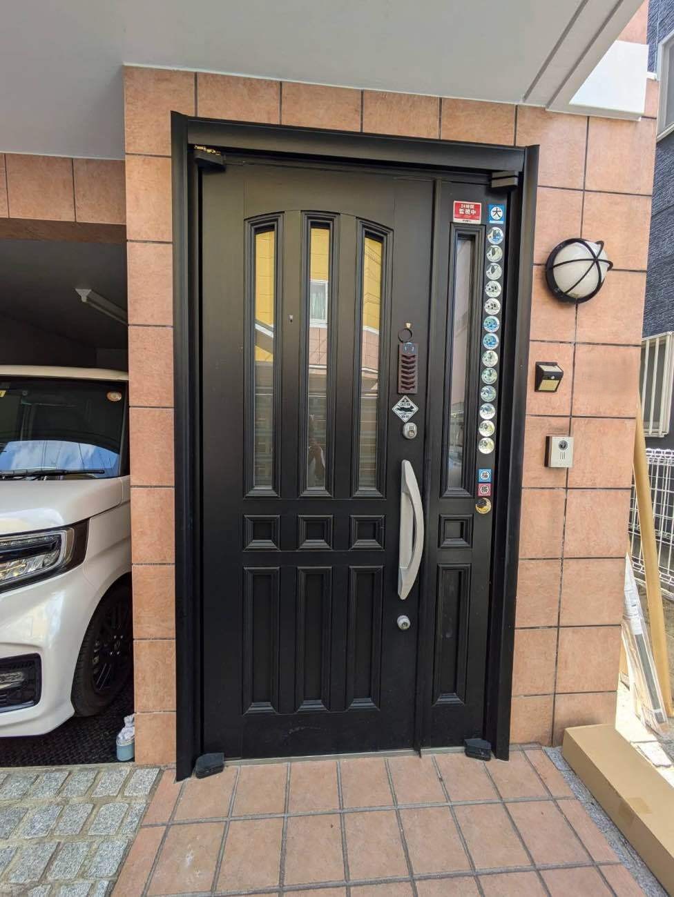 1日で交換できるLIXILの玄関ドア「リシェント」をご提案しました。工事の手軽さに加え、スタイリッシュなデザインや、便利な電子キー機能も気に入っていただけました。玄関まわりの印象が大きく変わりました。
