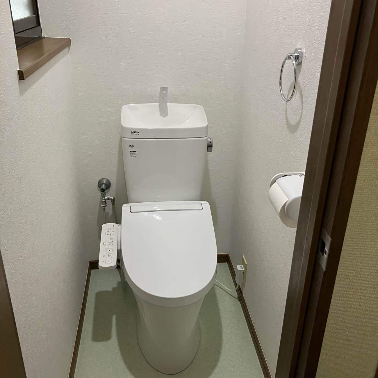 こちらのトイレは奥行きが狭い空間だったため、コストを抑えつつもスッキリ収まるよう、LIXILの「アメージュ」シリーズをご提案しました。