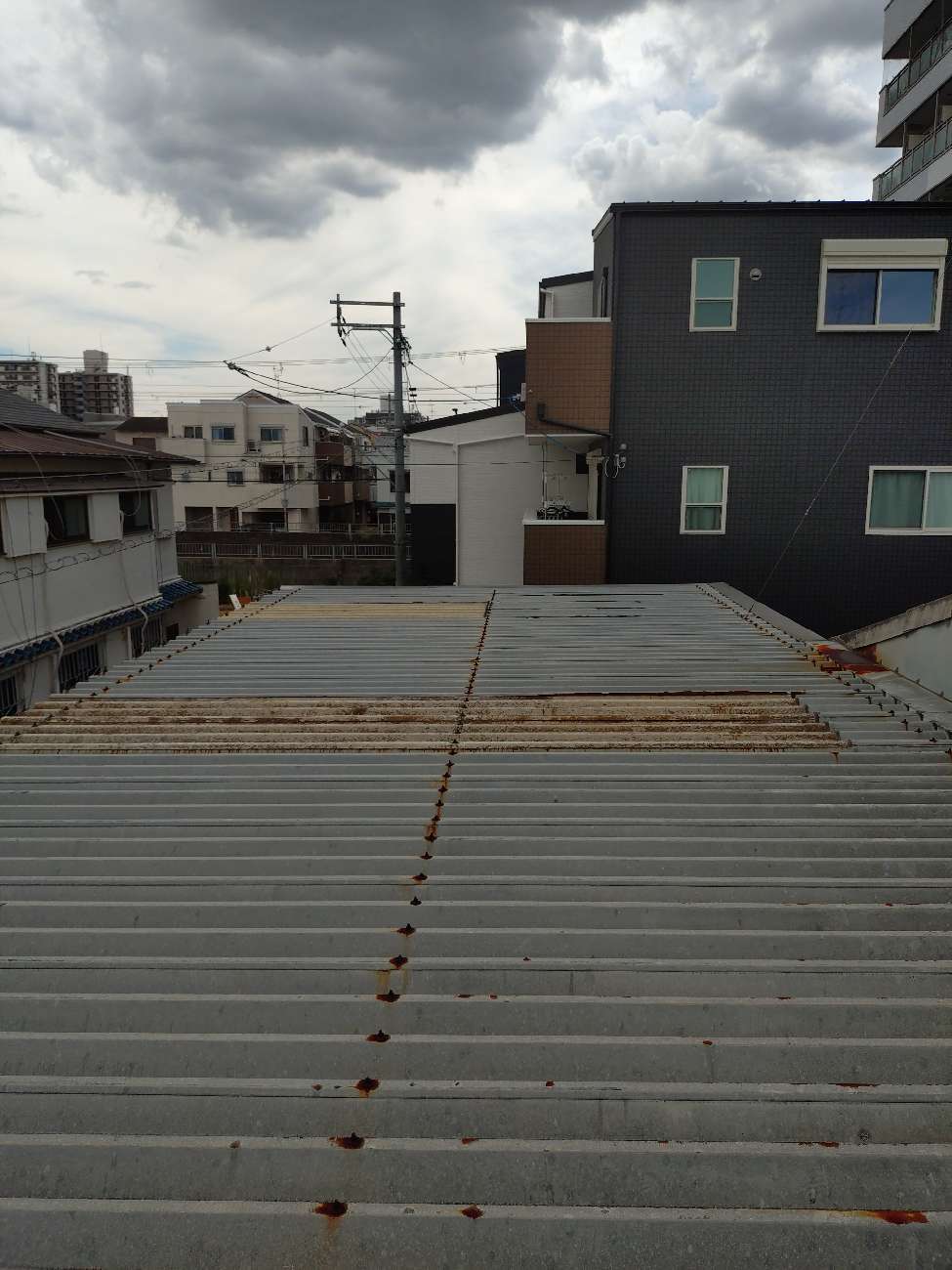 「夏の工場内が暑すぎて困っている」というお悩みからスタートした今回のリフォーム。大阪市内にある工場にて、折板屋根(せっぱんやね)へ遮熱塗装を行いました。